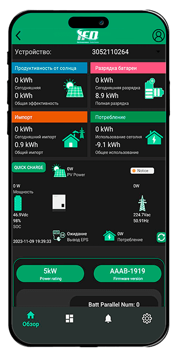 С помощью мобильного приложения, настройте накопители электроэнергии и получайте информацию в реальном времени из смартфона с поддержкой дистанционного управления.